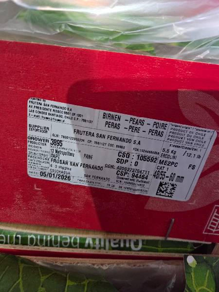 8 PERE COSH IN CASSETTA DA 5,5KG CAL55-60 CHILE