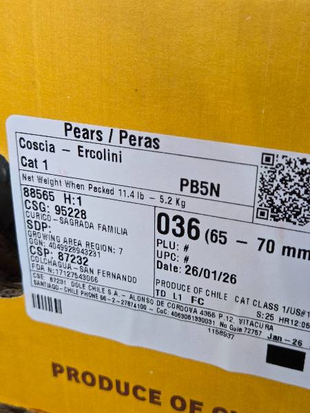8 PERA COSH IN CRT DA 5,2KG NETTI CAL65-70 CHILE